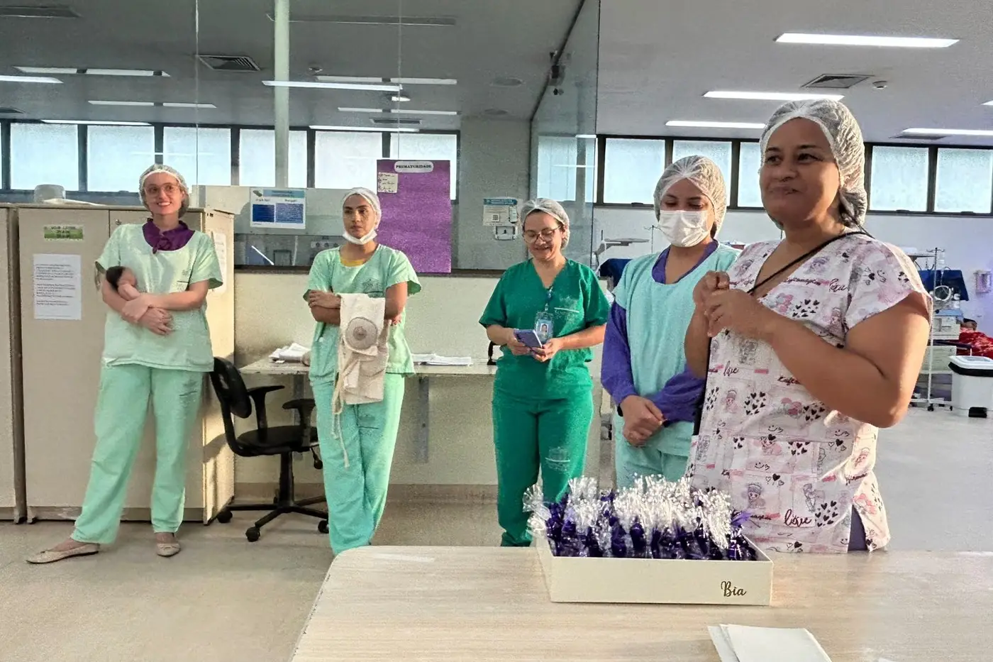 “Abordamos os cuidados com o bebê, o empoderamento dos cuidadores como participantes da equipe e sobre a amamentação do prematuro. Além das orientações, eles receberam acolhimento e brindes”, informou a fonoaudióloga Luana Kellyn Ferreira.
