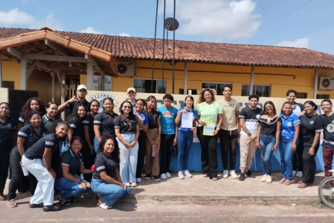 Equipe da IV Feira Científica do Município de Salvaterra, durante divulgação do evento nas escolas das zonas rural e urbana de Cachoeira do Arari