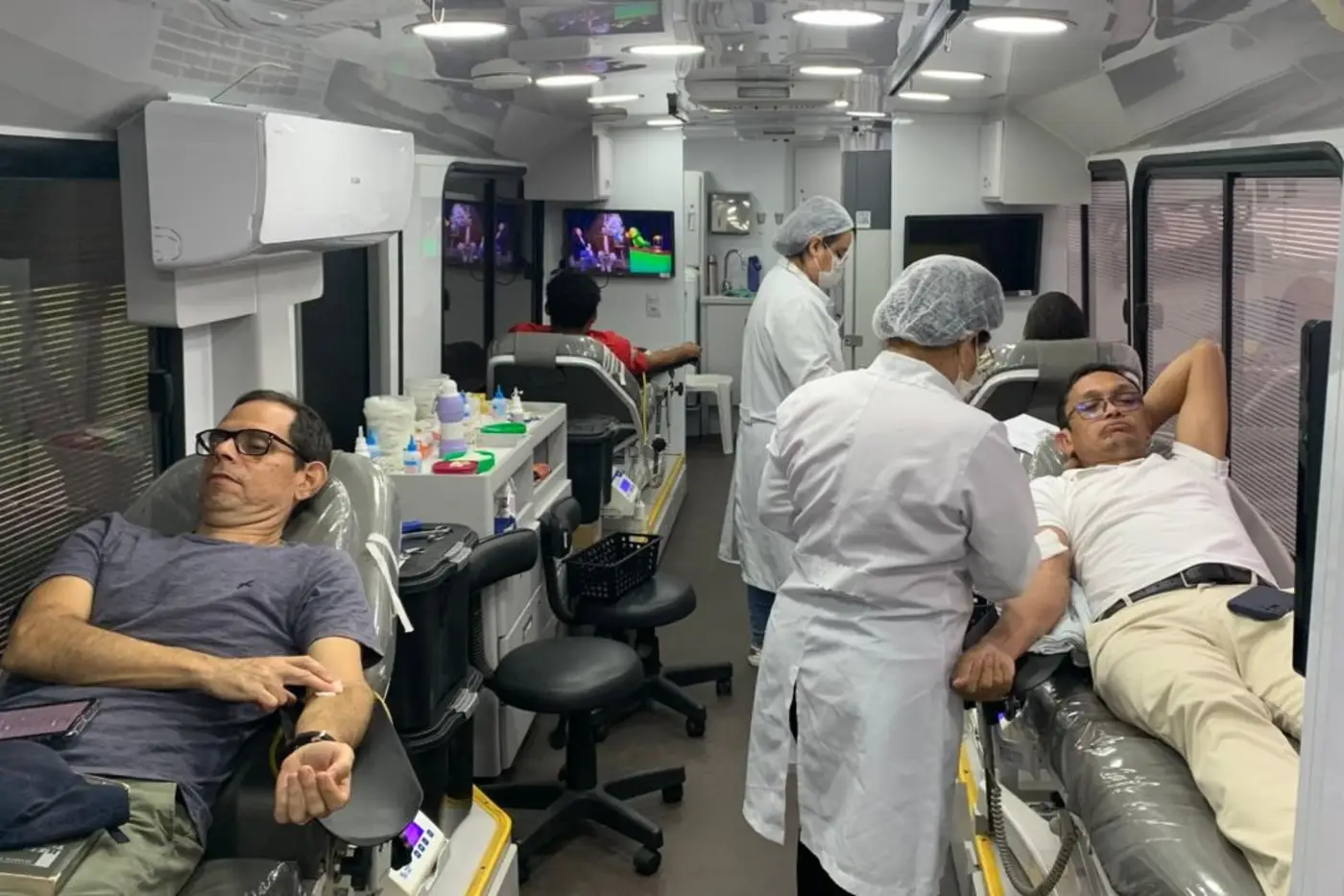 Para atender os voluntários foi oferecida uma estrutura com unidade móvel e trailer, garantindo conforto, segurança e agilidade durante o atendimento. A iniciativa facilitou o acesso de estudantes, servidores e visitantes, evitando deslocamentos até as unidades fixas do Hemopa.