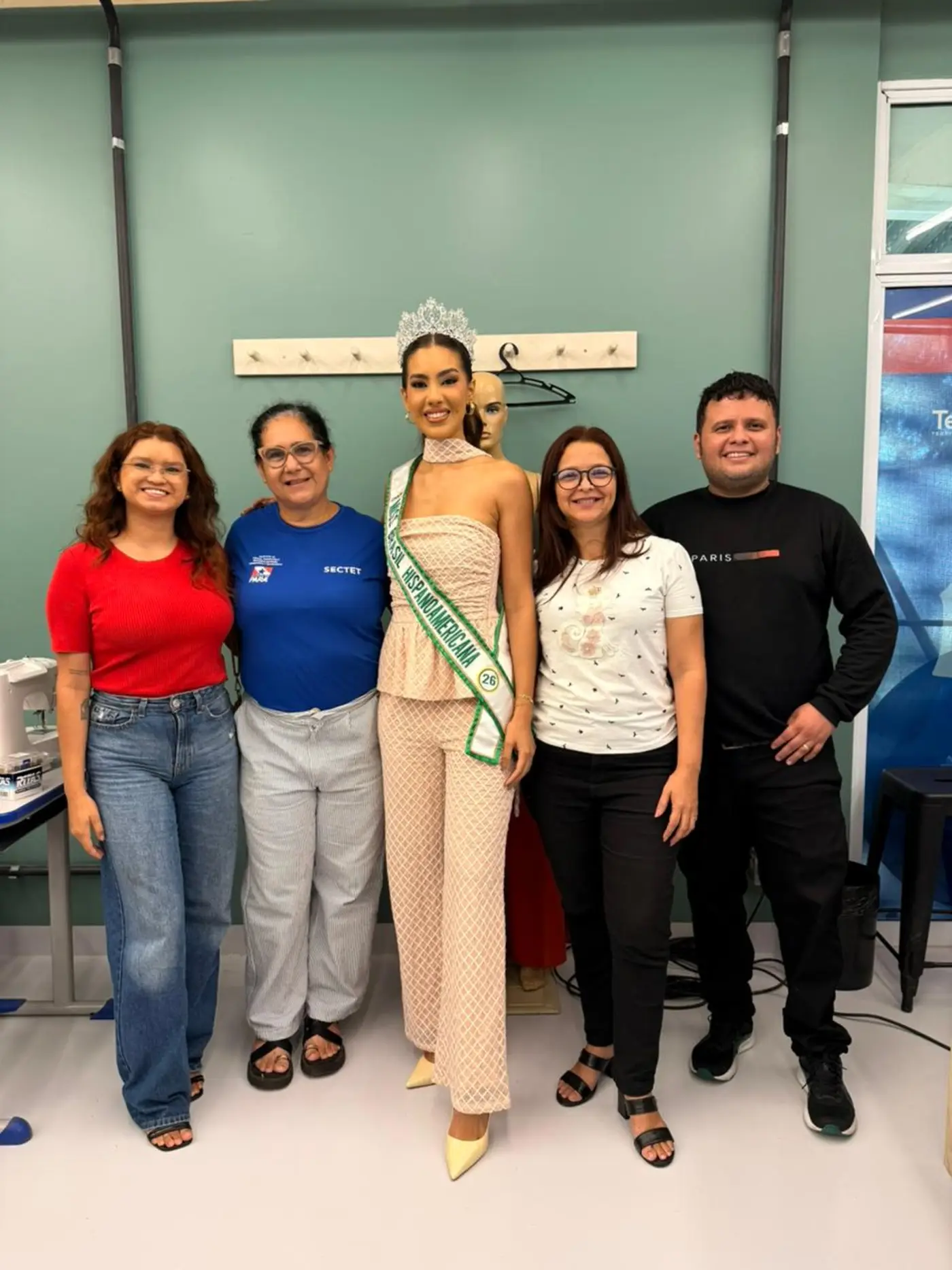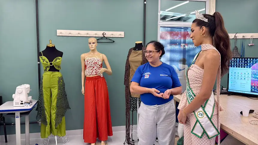As alunas do Curso de Costura e Moda, desenvolvido por meio da parceria entre a Secretaria de Estado de Ciência, Tecnologia e Educação Profissional e Tecnológica (Sectet) e a Usina da Paz da Terra Firme, dentro do programa Pará Profissional, tiveram um projeto selecionado para confeccionar as roupas que serão usadas pela Miss Brasil Hispanoamericana, a paraense Cássia Adriane, durante o confinamento e as etapas oficiais do concurso Reina Hispanoamericana 2026, que ocorrerá em fevereiro, na Bolívia.