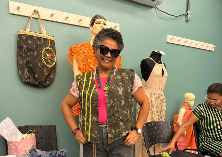 “O que acontece aqui tem tudo a ver com o que eu acredito: sustentabilidade, autonomia e transformação pela moda. Quero mostrar isso para o mundo. Este curso promove autonomia e novas oportunidades para mulheres e homens que buscam aprender uma profissão, gerar renda e transformar suas trajetórias”, afirma Cássia Adriane.