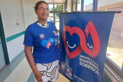 Cleane Carvalho Viana, de 43 anos, acompanha o pai que está em tratamento no Hospital Regional do Baixo Amazonas Dr. Waldemar Penna (HRBA), em Santarém, Oeste do Pará. Na quinta-feira (27), ela decidiu doar sangue pela primeira vez para ajudar não só o ente querido, mas também outras pessoas.