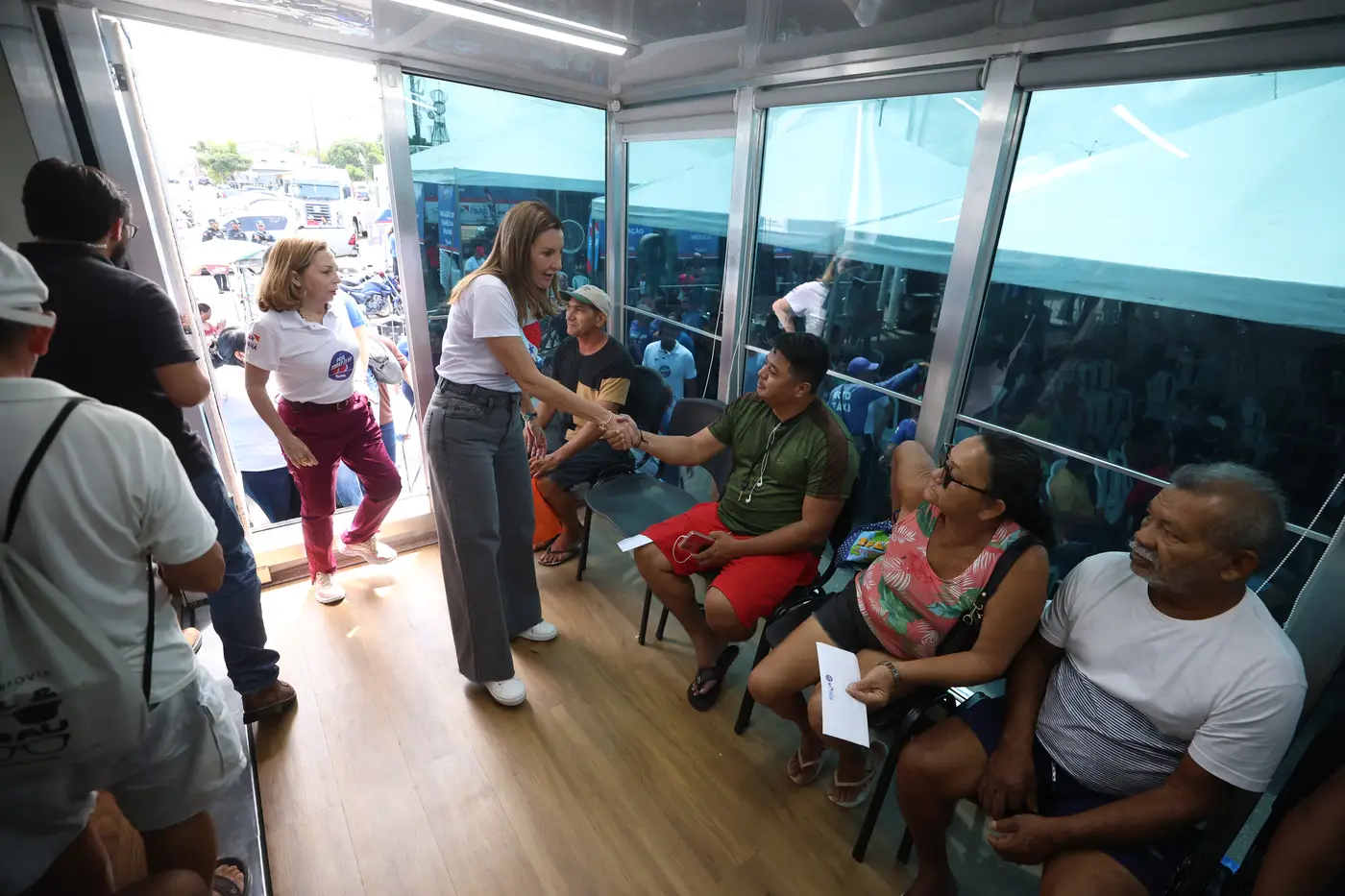 Estrutura - A estrutura montada no local garantiu conforto e organização para quem buscou atendimento. No total, nove carretas foram instaladas, incluindo duas carretas de atendimentos especializados para as mulheres e uma carreta exclusiva para os homens, além de unidades destinadas aos demais serviços médicos, de cidadania e bem-estar, distribuídas de forma estratégica para facilitar o fluxo do público.