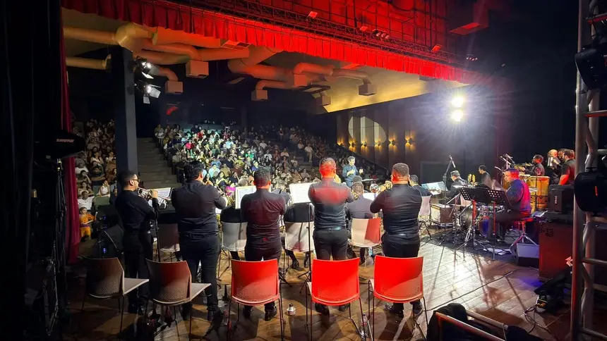 A Amazônia Jazz Band apresentou o espetáculo “Festa Amazônica”, na noite desta quinta-feira, 4, no Teatro do Liceu da Música, em Bragança, no nordeste paraense, sob a regência do maestro Eduardo Lima, com duas sessões esgotadas.