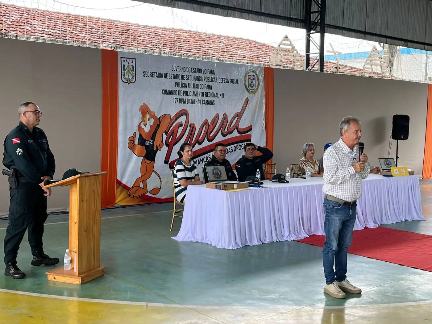 Em Xinguara, no sudeste do Pará, mais de 600 crianças e adolescentes atendidos pelo Programa Educacional de Resistência às Drogas e à Violência (Proerd), ao longo de 2025, participaram da formatura do projeto, realizada no Ginásio de Esportes da Escola Acy de Barros Pereira. O evento aconteceu, na quarta-feira (3), e contou com a participação de  familiares, professores e autoridades municipais civis e militares.