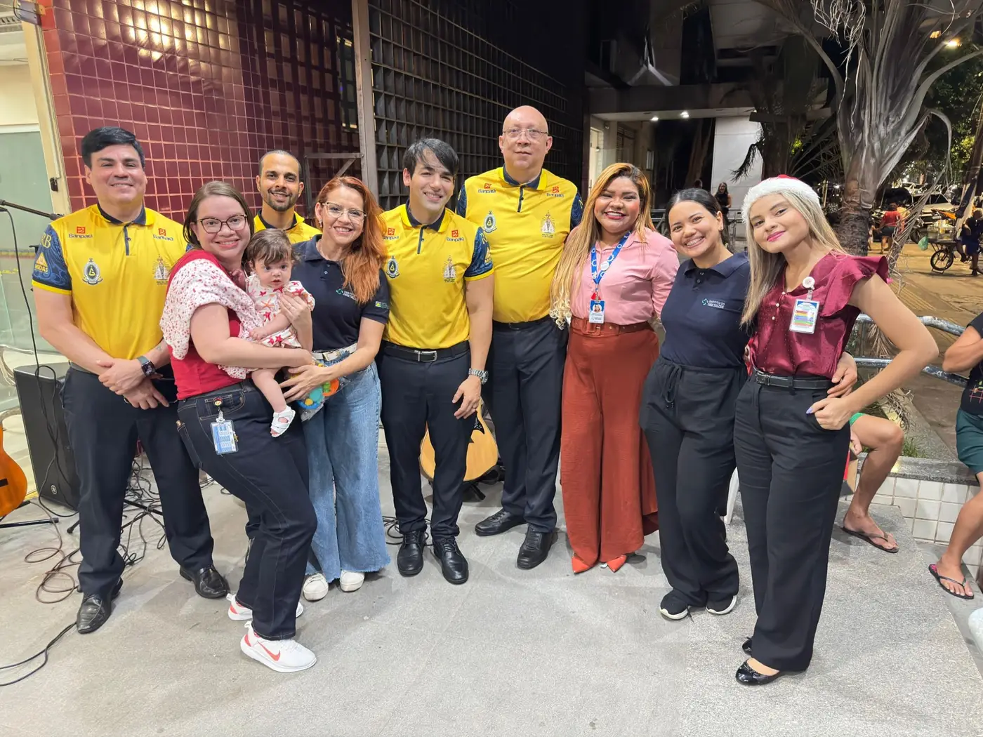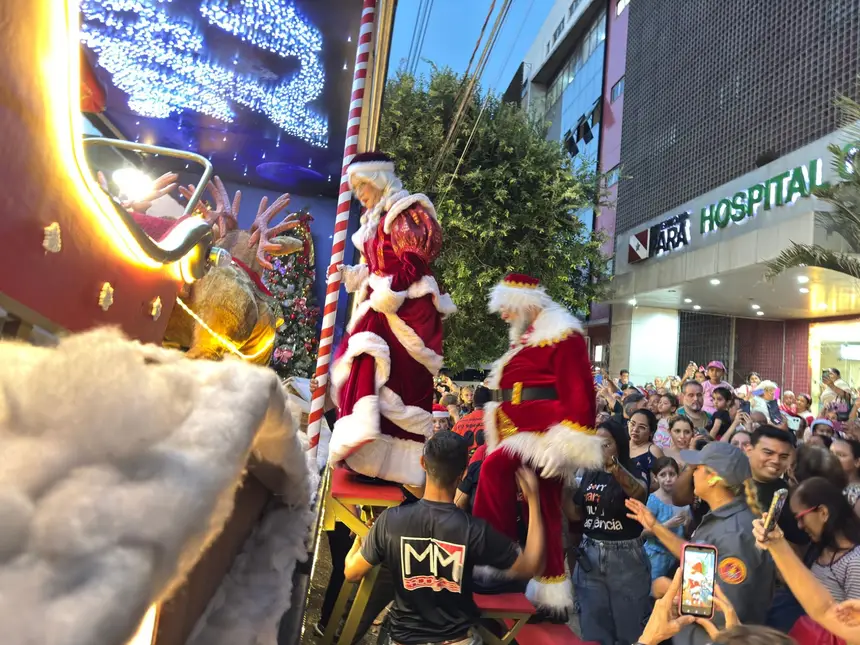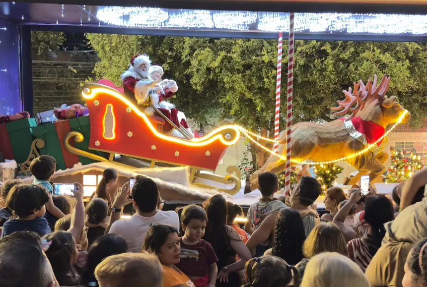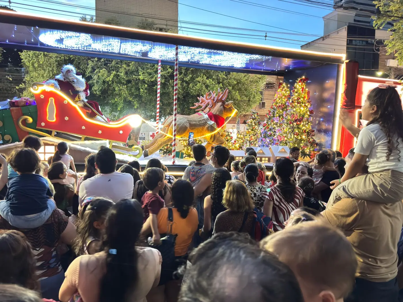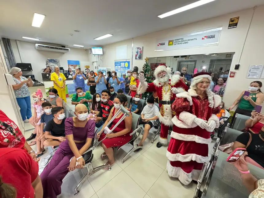 O brilho das luzes da tradicional Caravana Natalina da Coca-Cola iluminou a entrada do Hospital Oncológico Infantil Octávio Lobo (Hoiol), na noite da última segunda-feira (8). Papai e Mamãe Noel conduziram o espetáculo, levando música e encantamento às crianças e adolescentes em tratamento na unidade. A chegada do comboio natalino alegrou o ambiente hospitalar. Um intervalo doce em meio às rotinas de exames, medicações e procedimentos.