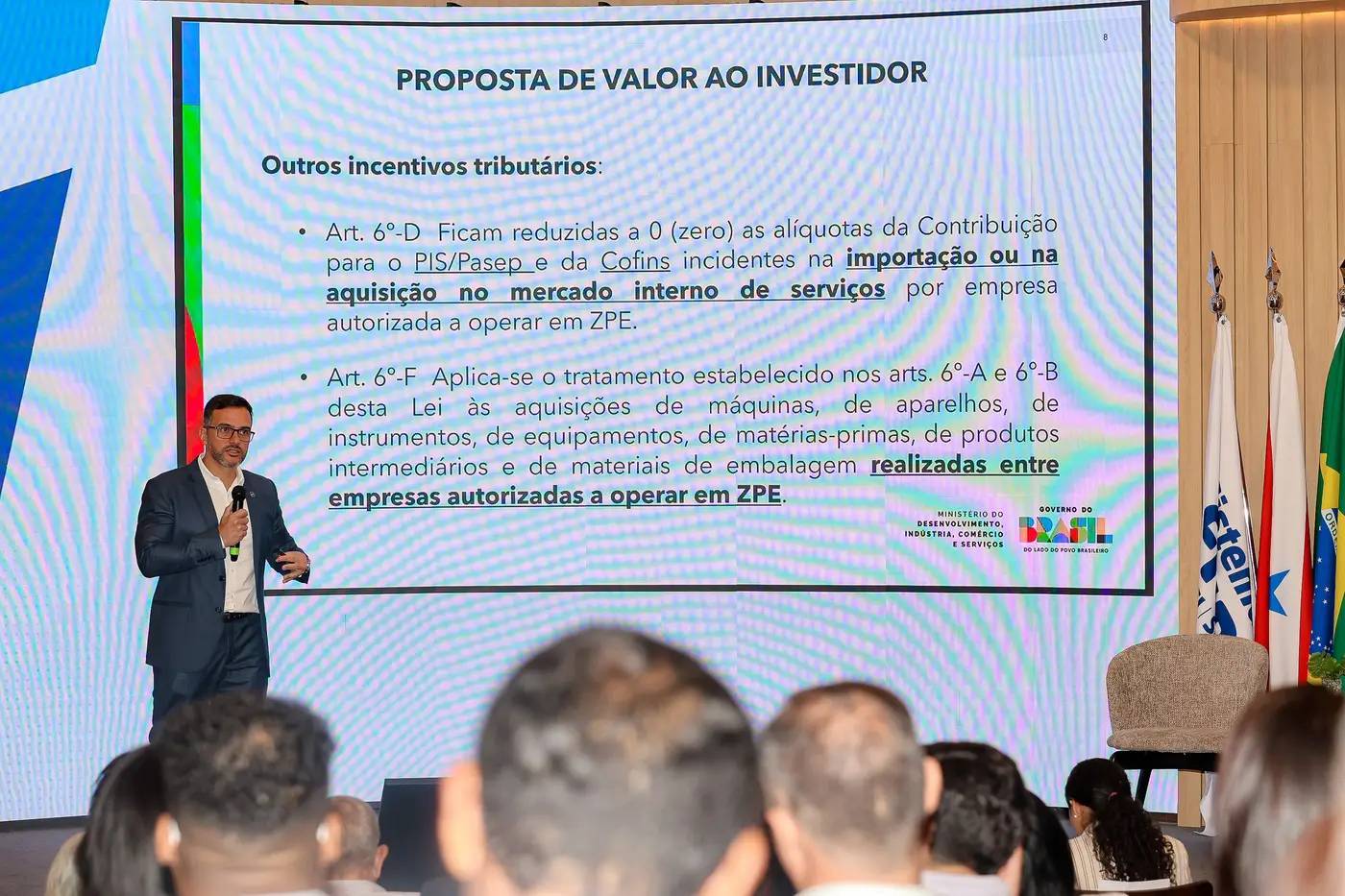 A primeira apresentação técnica foi conduzida por Fabio Pucci, secretário-executivo do Conselho Nacional das Zonas de Processamento de Exportação (CZPE). Ele ressaltou que a ZPE de Barcarena se destaca por funcionar como zona primária alfandegada, o que reduz custos operacionais e amplia a previsibilidade para investidores. “A política de ZPE exige contrapartidas e entrega resultados. Barcarena está preparada para isso”, afirmou.