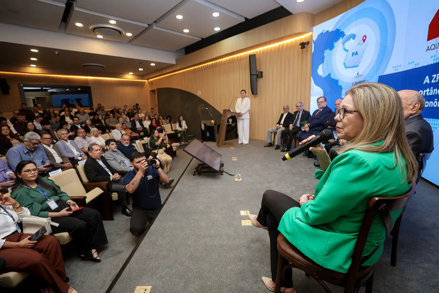 O Governo do Pará apresentou, nesta quarta-feira (10), a Zona de Processamento de Exportação (ZPE) de Barcarena como uma plataforma estratégica para impulsionar a industrialização, agregar valor à produção mineral e inserir o Estado em uma nova agenda econômica nacional. A cerimônia, realizada no auditório Albano Franco, reuniu mais de 160 participantes, entre empresários, representantes do setor financeiro, gestores portuários, parlamentares, escritórios de advocacia e instituições públicas, demonstrando o amplo interesse institucional e produtivo no projeto.