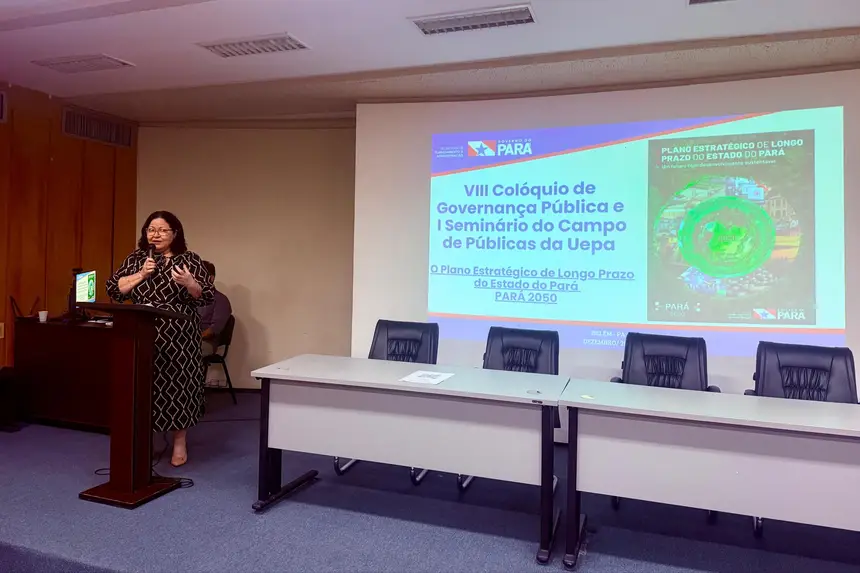 Durante a conferência de abertura, a diretora de Planejamento Estratégico da Secretaria de Estado de Planejamento e Administração (Seplad), Maria Castro, apresentou o tema “A formação de servidores públicos e a execução do Planejamento de Longo Prazo – Pará 2050”. A apresentação destacou o papel do servidor público na consolidação de um Estado inovador, sustentável, justo e pautado na sociobiodiversidade e multiculturalidade da Amazônia.