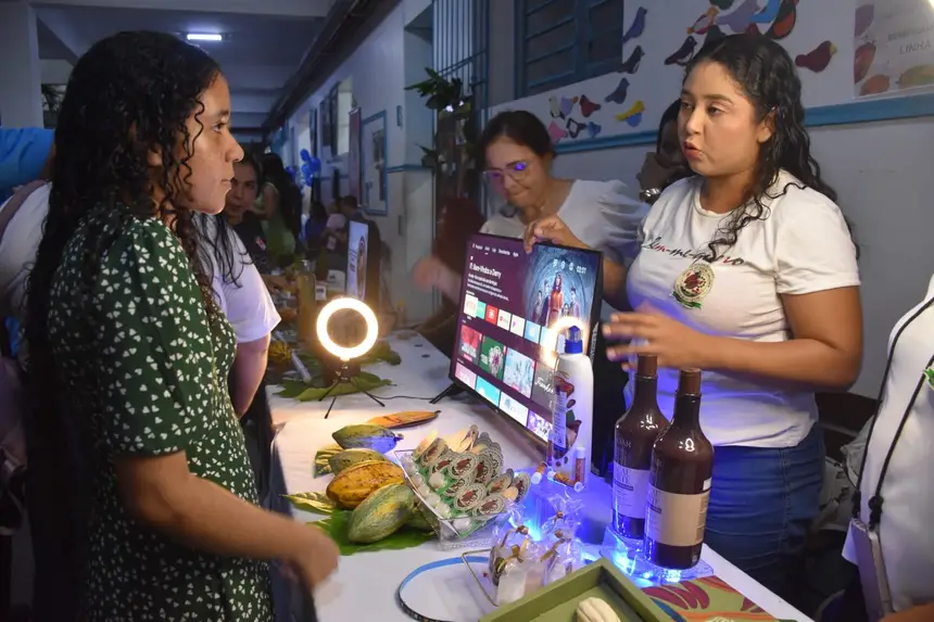 Já a aluna Ângela Narciso, do curso Técnico de Controle Ambiental, destacou que a preocupação com o descarte inadequado de resíduos motivou a equipe a desenvolver soluções sustentáveis a partir do fruto do açaí, integrando inovação e responsabilidade socioambiental. “Aqui no curso, tudo o que a gente puder fazer de melhoramento pela nossa cidade, pela nossa comunidade, pelo nosso bairro, levando informação sobre reciclagem, sobre o bioprocessamento de alimentos, sobre a reciclagem de uma garrafa ou de uma latinha que tu tens em casa, é muito, muito bom para a cidade, para a comunidade, para a nossa rua, para o nosso bairro. Porque, ultimamente, o descarte de lixo nas ruas é um problema social e mundial”, afirmou.
