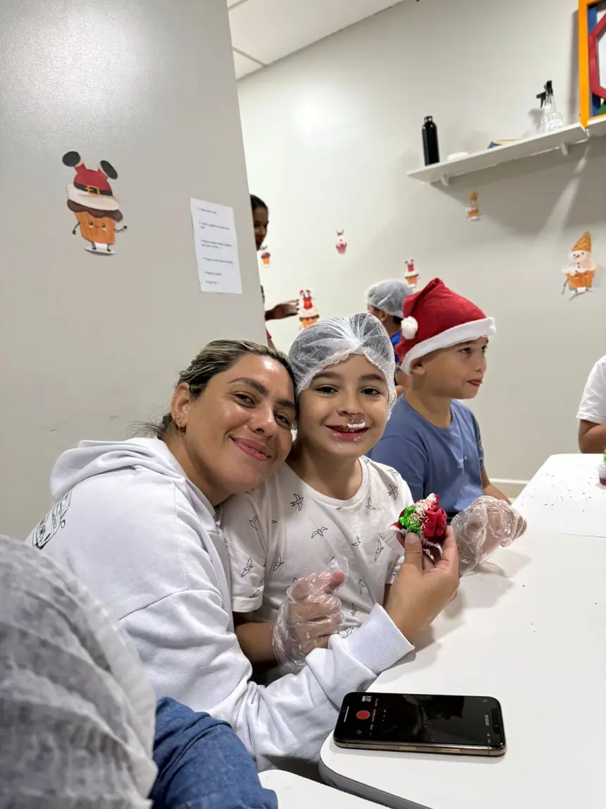 “A Eybe era muito introvertida, se isolava quando chegava alguém que não fazia parte do convívio. Depois das terapias, ela passou a interagir mais, cumprimentar, conversar. Na escola, está mais disposta, participativa e até criando novas amizades, algo que antes não acontecia. Ela mesma lembra que tem terapia e pede para vir”, contou. Para ele, a oficina de cupcakes tornou o evento ainda mais especial. “Achei muito legal. A parte lúdica, o espírito de Natal, tudo isso uniu crianças e responsáveis. A gente se envolve, participa e vive esse momento junto com eles.”
