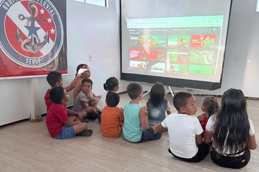Base Fluvial Antônio Lemos promove sessão de cinema para crianças de Breves
