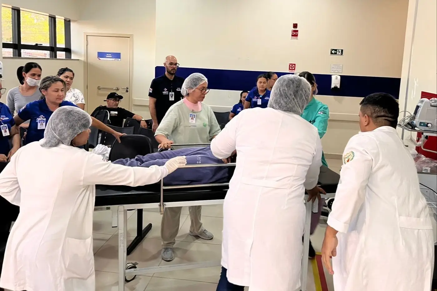 Durante o exercício, que simulou situações de código azul e código amarelo, os usuários se surpreenderam positivamente com a iniciativa do hospital em qualificar continuamente seus colaboradores para garantir um atendimento mais seguro e eficiente. O treinamento foi realizado na sala de Reabilitação e contou com o apoio da equipe assistencial, incluindo enfermeiros, técnicos de enfermagem e profissionais dos setores de laboratório e hemodiálise, que contribuíram para tornar o cenário ainda mais realista e alinhado às práticas adotadas em situações de emergência.