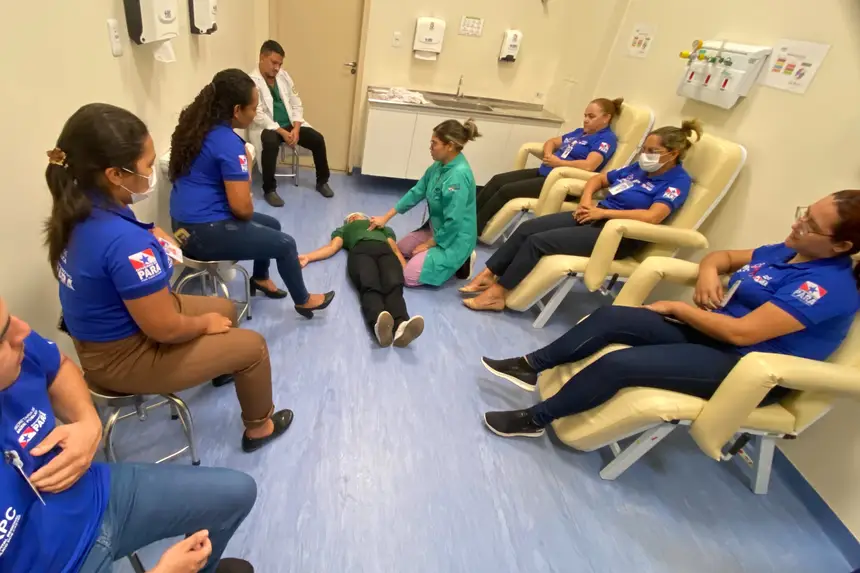 Referência em média e alta complexidade na região nordeste do Pará, a gestão do Hospital Regional Público dos Caetés (HRPC), em Capanema, promoveu, na manhã desta segunda-feira (15), uma simulação realística de atendimento a emergências com a equipe de recepcionistas do Ambulatório. A ação capacitou os profissionais a reconhecerem sinais de piora clínica, realizarem a estabilização inicial do usuário e acionarem corretamente o código de emergência, até a chegada da equipe de Enfermagem.