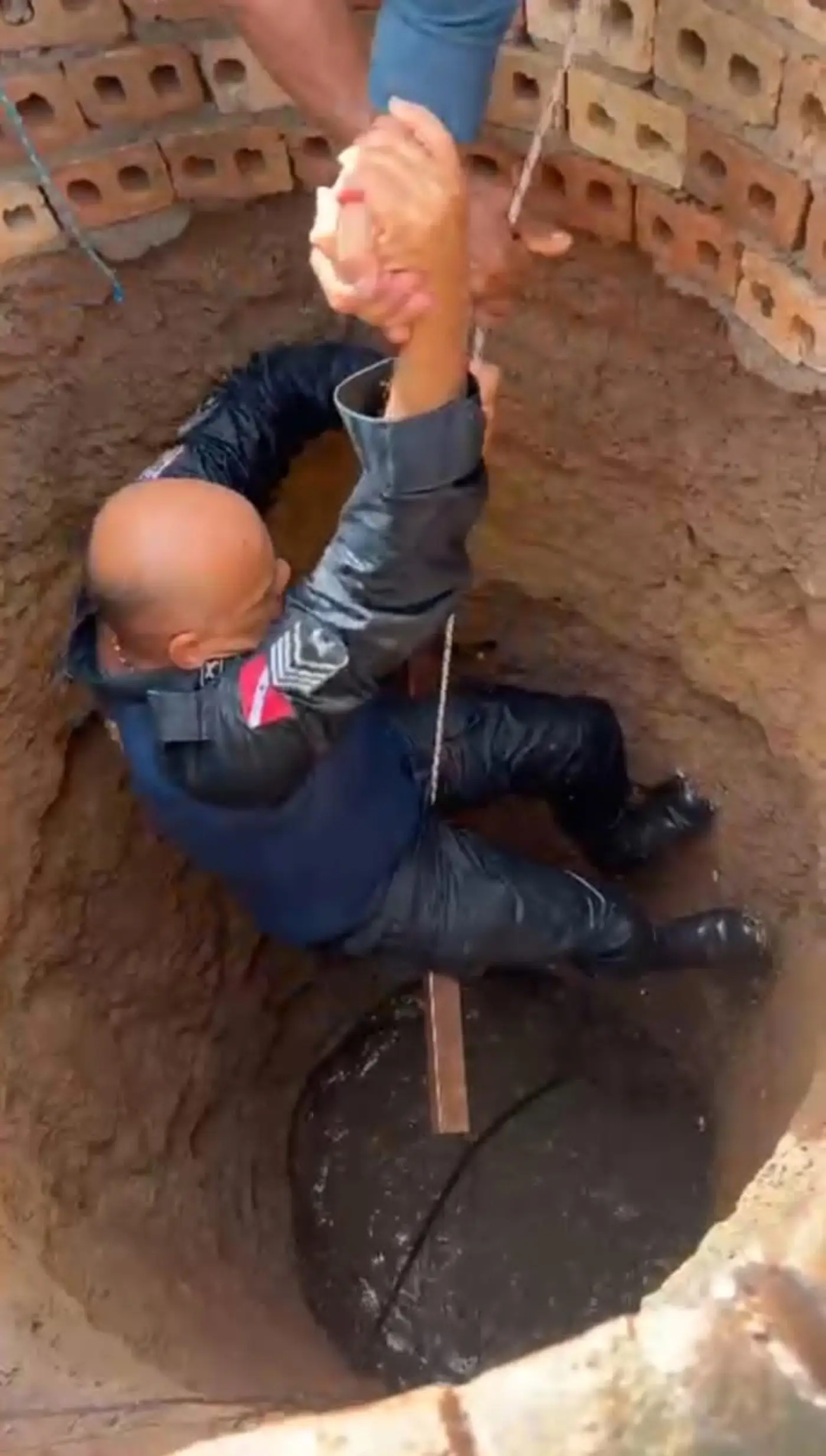 A guarnição se deslocou com urgência até o endereço informado. Ao chegarem, os policiais constataram que a criança estava dentro do poço, com sinais de afogamento, exaustão e risco iminente de morte.
