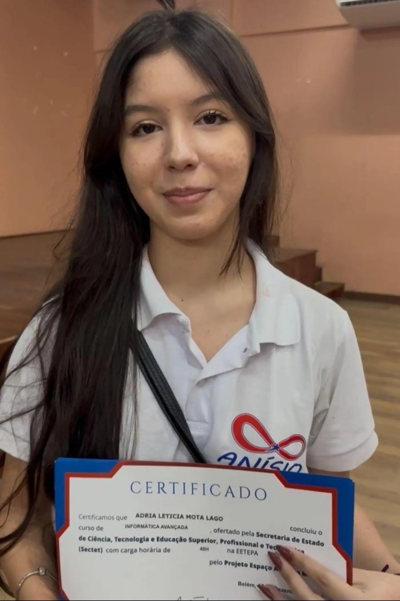 A concluinte Ádria Lago, certificada nos cursos de Robótica e Informática Avançada, destacou que a formação representa um passo importante para o seu desenvolvimento profissional. Segundo ela, os conhecimentos adquiridos ao longo das aulas ampliaram sua visão sobre tecnologia, programação e soluções inovadoras, áreas cada vez mais exigidas pelo mercado de trabalho. “Acredito que esses cursos vão impulsionar minha carreira no futuro, abrindo novas oportunidades e me preparando melhor para os desafios profissionais que virão”, destacou.