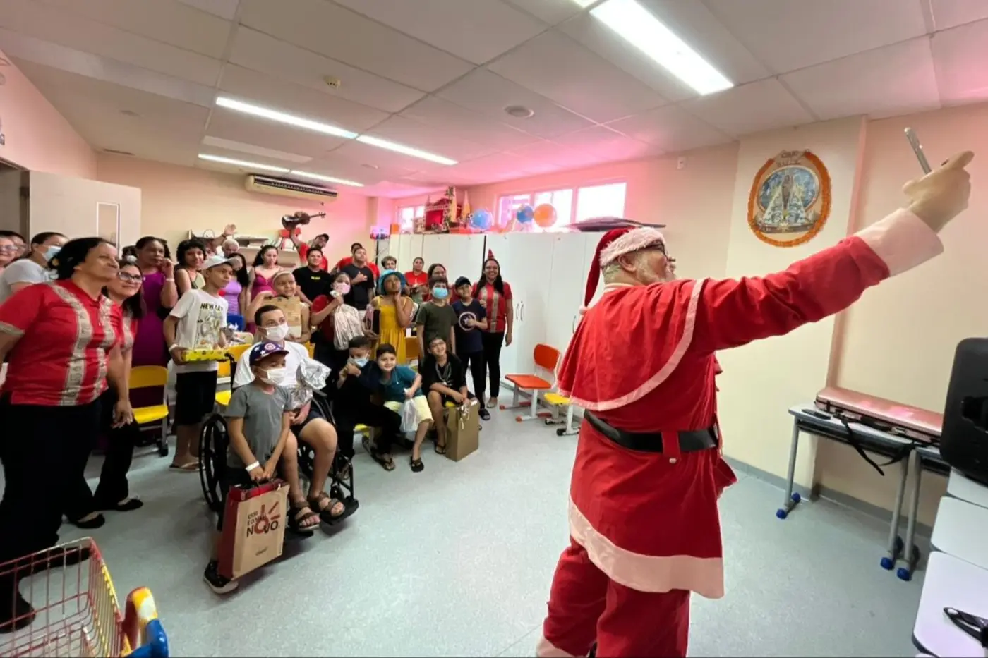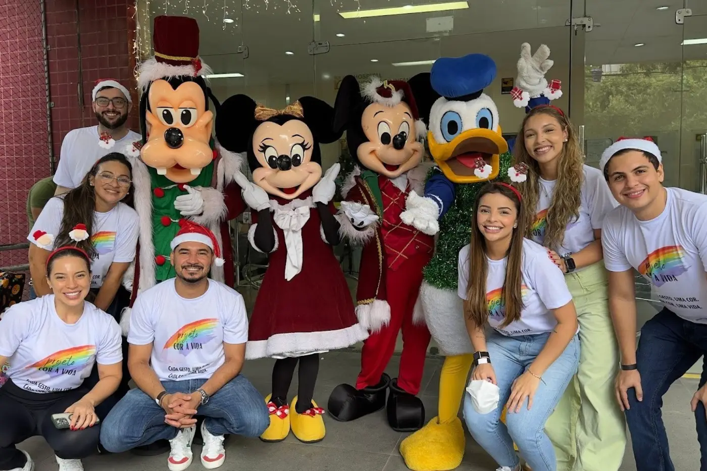 Papai Noel e sua turma percorreram setores do hospital, distribuindo presentes e carinho às crianças e familiares