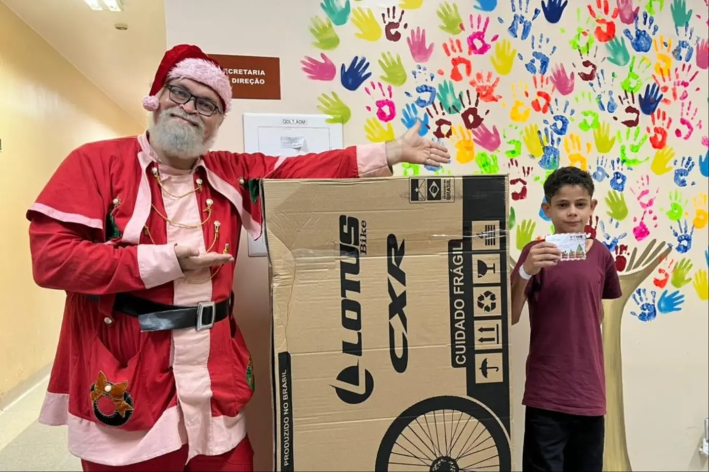 O paciente Thiago dos Santos, 14 anos, pediu uma bicicleta para ir à escola e comemorou ao ver o tamanho da caixa do presente. “Moro no bairro do Planalto, em Dom Eliseu (município do nordeste paraense), e minha escola fica longe da minha casa. Eu gostei muito do presente. A bicicleta vai me ajudar bastante. Muito obrigado e feliz Natal”, disse o adolescente.