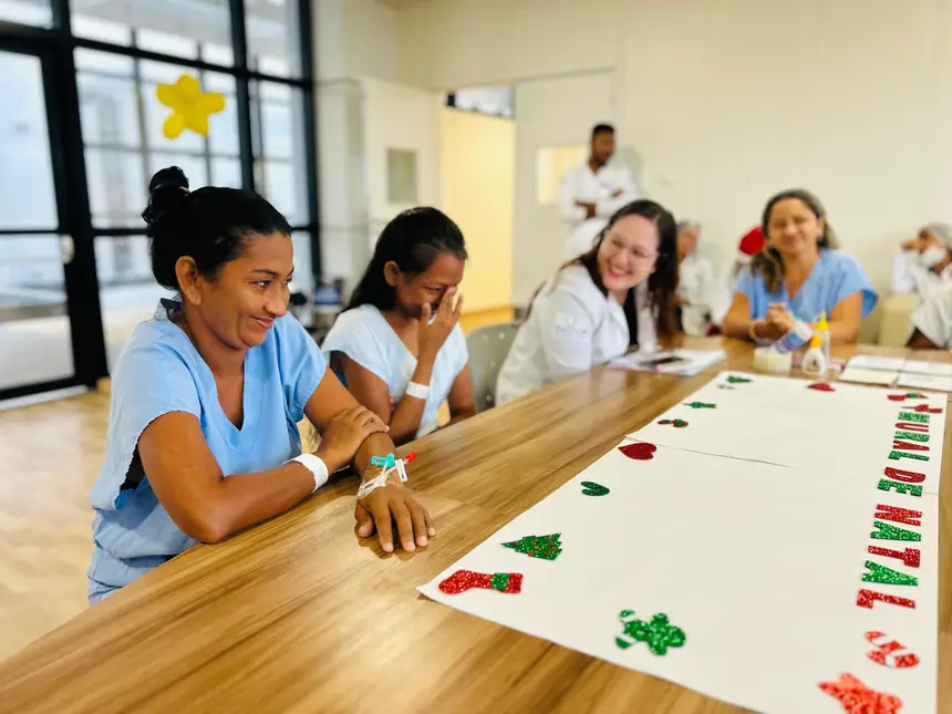 Pensada especialmente para as pacientes que permanecerão internadas e longe de suas famílias durante o Natal, a atividade buscou minimizar sentimentos de saudade e solidão, reforçando o cuidado humanizado. “O Natal carrega um forte simbolismo afetivo. Ao escutarmos as demandas emocionais das pacientes nesse período, conseguimos oferecer um cuidado que vai além do tratamento clínico, dando um sentido diferente para as que estão internadas”, destacou a terapeuta Ocupacional Isabel Rodrigues.