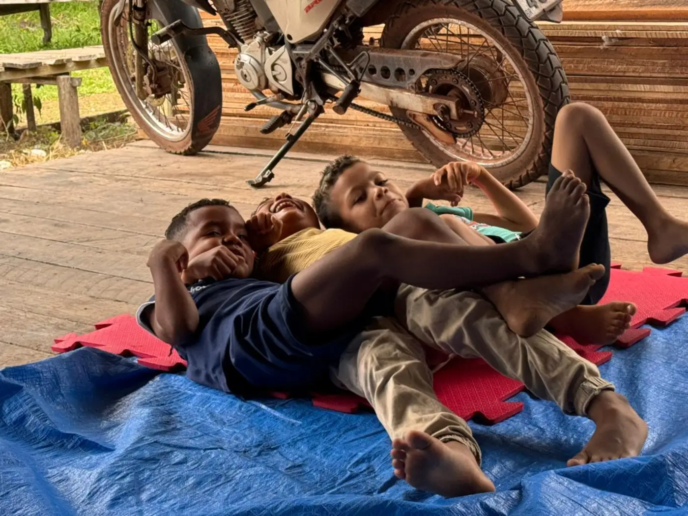A criação de uma biblioteca comunitária surgiu de uma sugestão de João Pedro, 7 anos, que expressou o desejo de compartilhar livros entre seus amigos que também moram na comunidade, durante uma das visitas da equipe.