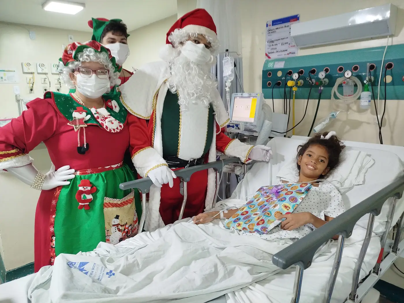 Em tratamento contra anemia falciforme na Unidade de Terapia Intensiva (UTI) Pediátrica, Emily se emocionou com a surpresa inesperada. “Eu fiquei feliz com a visita do Papai Noel. Não estava esperando e adorei quando ele entrou no meu quarto. Ganhei presente, tirei foto com ele e isso deixou meu Natal muito melhor”, contou, com o brilho nos olhos de quem esqueceu um pouco a internação e lembrou apenas que é criança.