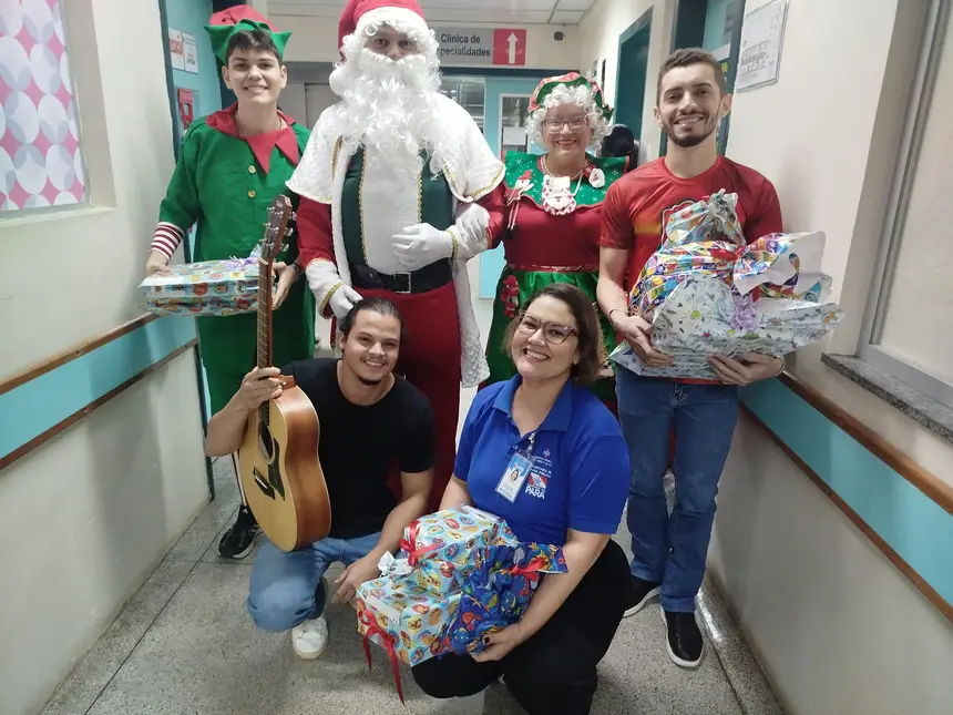 Acolhimento - A iniciativa é do Serviço de Humanização do hospital, com apoio do grupo teatral Filhos de Francisco, por meio do projeto Natal Encantado, da Paróquia São Francisco, em Marabá, além de voluntários que doaram brinquedos. A ação percorreu os leitos como um abraço coletivo, levando acolhimento, leveza e criando memórias afetivas que ultrapassam o período de internação e permanecem com as famílias.