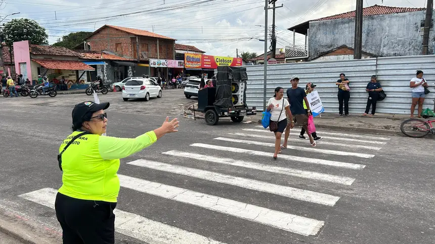Durante o dia, as atividades educativas concentram-se na rodovia PA-124, principal acesso ao município. O foco das abordagens é o respeito à faixa de pedestres, elemento fundamental para a preservação de vidas. Durante as ações, os agentes orientam pedestres sobre a importância de utilizar corretamente a faixa, alertando para os riscos de travessias irregulares, prática comum em locais de grande movimentação.