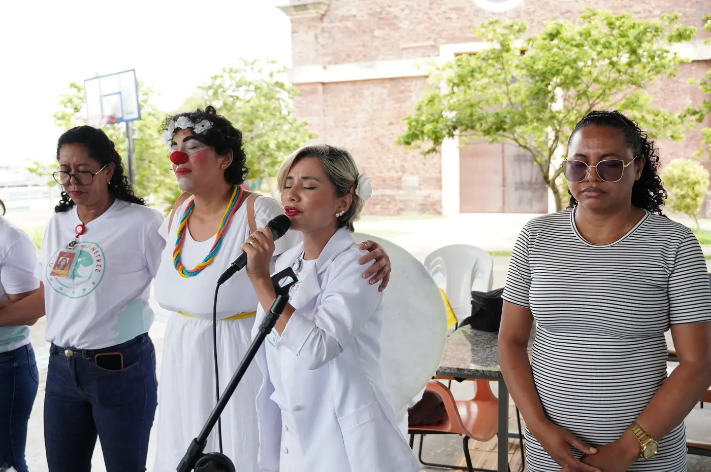 No CIIR, o momento interreligioso foi mediado pela personagem Nanna Chorona, interpretada pela professora de Teatro da unidade, Paula Barros. A mediação artística trouxe sensibilidade e leveza ao encontro, favorecendo a escuta e a aproximação entre os participantes. As facilitadoras foram as colaboradoras Michele da Silva, do Ministério de Música Totus Tuus Marie, da Igreja Católica, e Odiw Falcão, da igreja Assembleia de Deus, fortalecendo a proposta de diálogo e respeito entre diferentes expressões de fé.