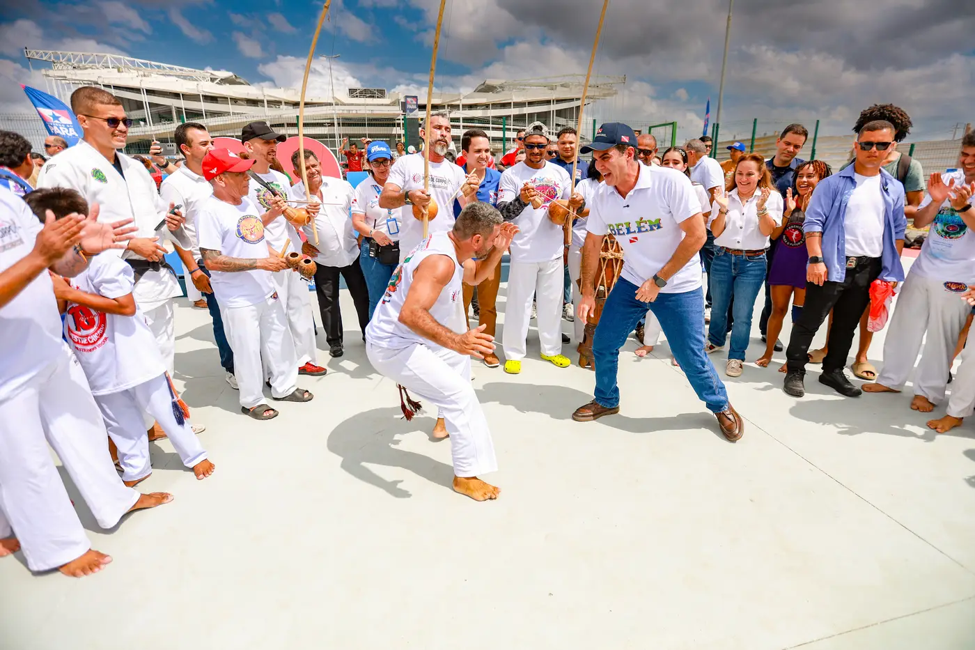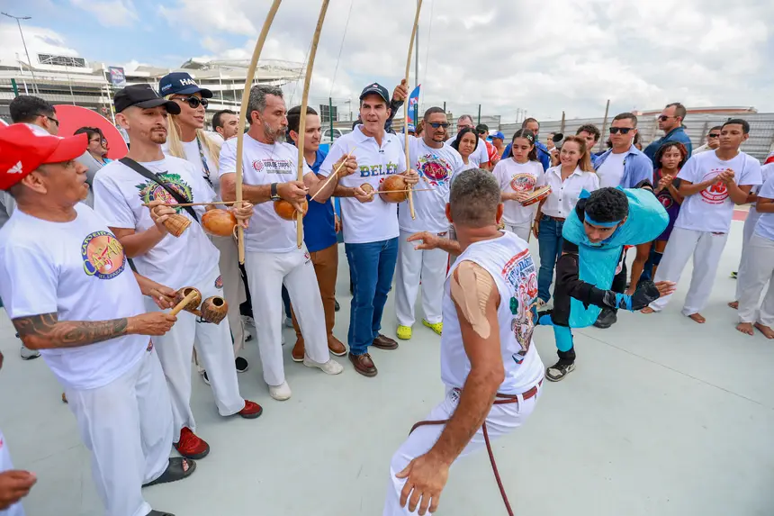 Governador Helder Barbalho até experimentou o jogo de capoeira junto a profissionais