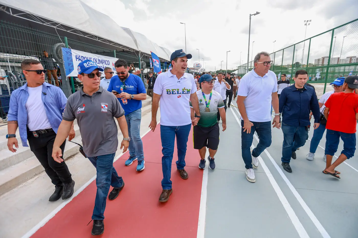 Governador e comitiva na manhã desta terça-feira (13) na entrega do novo mais complexo de esporte e lazer de Belém
