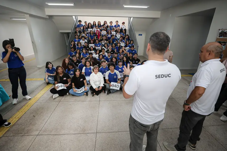 Neste sábado (17), os estudantes da Escola Estadual Albanizia de Oliveira Lima, no bairro do Marco, em Belém, se reuniram para o registro tradicional na escadaria da instituição em celebração aos resultados positivos conquistados no Exame Nacional do Ensino Médio (Enem).