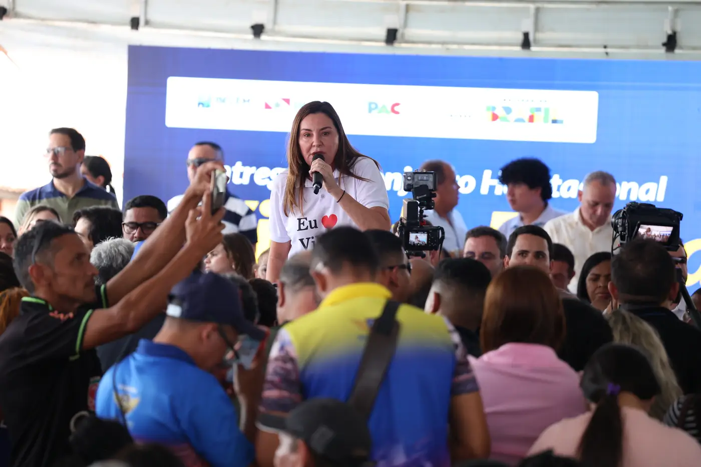Ainda na Vila da Barca, a vice-governadora também participou da agenda de entregas de moradias. As unidades habitacionais fazem parte de um projeto urbanização do Ministério das Cidades.