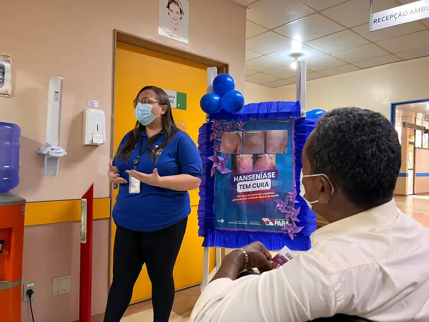 Com foco na informação e na prevenção, o Hospital Geral de Tailândia (HGT), por meio do Grupo de Trabalho de Humanização (GTH), realizou, nesta terça-feira (20), uma ação educativa direcionada aos usuários atendidos na unidade hospitalar, em alusão à campanha Janeiro Roxo, reforçando a importância do diagnóstico precoce, do tratamento adequado e do enfrentamento da hanseníase.