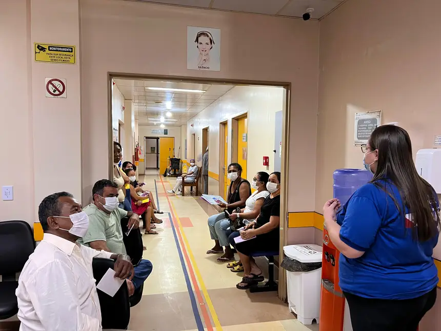 A atividade aconteceu nas recepções do HGT e no Centro de Hemodiálise, envolvendo usuários que aguardavam atendimento e também pacientes em acompanhamento regular. Ao todo, mais de 64 participantes estiveram diretamente envolvidos na ação, que teve como foco principal a informação, o acolhimento e a humanização do cuidado.