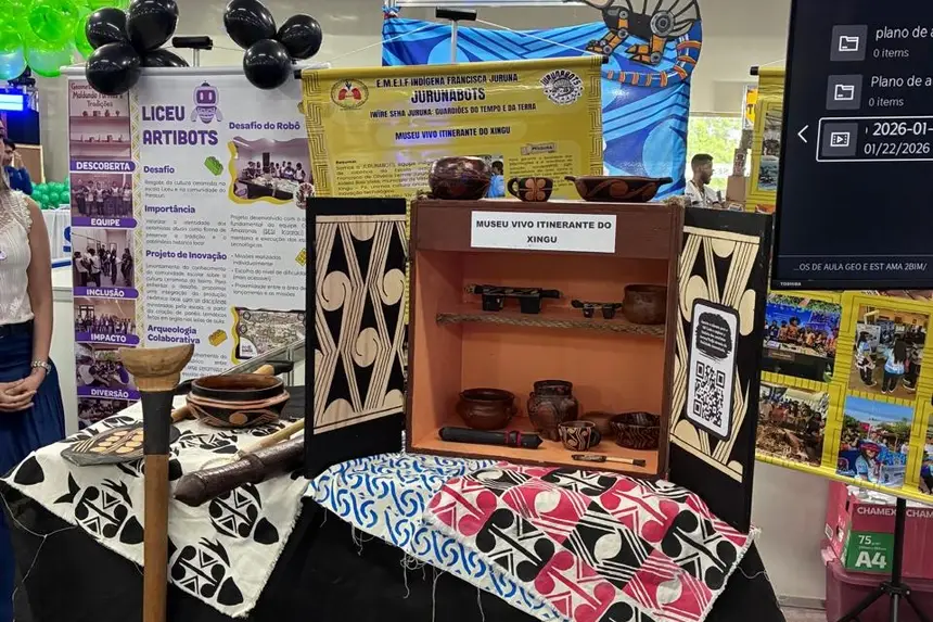 A equipe Jurunabots apresenta o projeto Museu Vivo Itinerante do Xingu, uma proposta que busca preservar a memória do povo Juruna sem retirar artefatos do território. A iniciativa consiste em uma maleta educativa com réplicas de objetos, registros culturais e recursos de realidade aumentada, além de conteúdos na língua Juruna. O objetivo é valorizar a oralidade, a história viva e a identidade cultural, respeitando o vínculo entre os objetos e o território de origem.