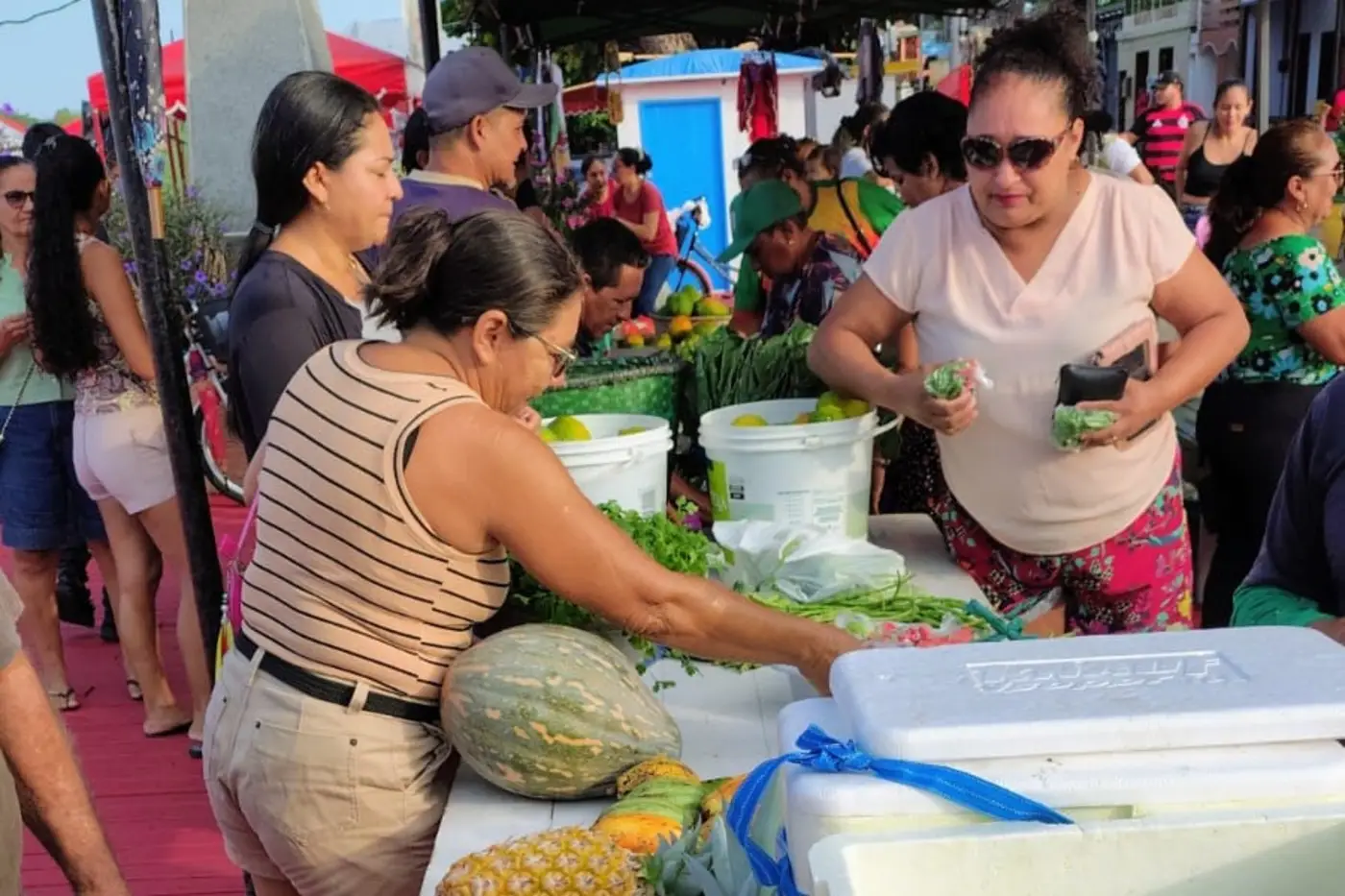 Das 7h até o último cliente, na Praça da Igreja Nossa Senhora da Conceição, pelo menos 12 assentados da reforma agrária atendidos pela Emater em comunidades ribeirinhas comercializarão produtos como cupuaçu nativo, milho verde cru e biojoia de semente de açaí.