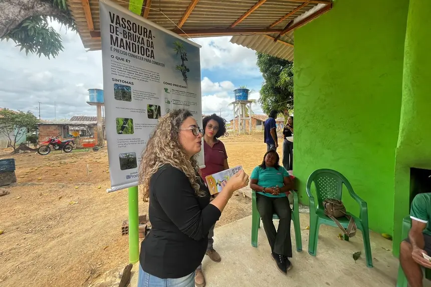 Para proteger essa cadeia produtiva tão importante, a Adepará, em parceria com a Superintendência Federal de Agricultura (SFA/PA) e a Secretaria Municipal de Agricultura de Bragança, promoveu encontros em comunidades produtoras de farinha, associações de agricultores, feiras e mercados. Engenheiras agrônomas explicaram, de forma simples, como identificar os sintomas da vassoura-de-bruxa e quais cuidados devem ser adotados para evitar a entrada da praga nas lavouras.