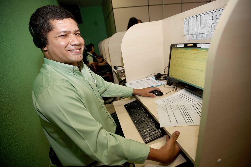 Breno Anderson do Carmo, cadeirante, conseguiu o primeiro emprego aos 27 anos. Em janeiro, ele começou a trabalhar no call center de um hospital privado, em Belém. “Eu jogava basquete, mas queria trabalhar com carteira assinada. O problema é que não são todas as empresas que aceitam a pessoa com deficiência, ainda mais o cadeirante, que precisa de espaço. Aqui tenho isso e ainda estou estudando. Entrei na faculdade de engenharia mecânica”, conta ele, que alcançou o objetivo graças a uma carta de recomendação enviada pelo Sistema Nacional do Emprego (Sine).