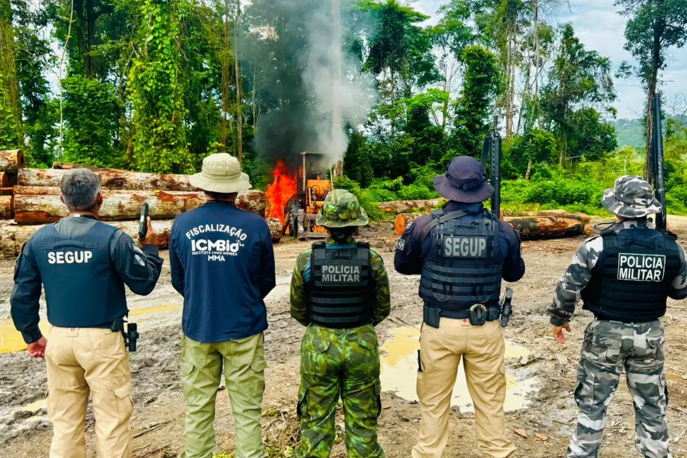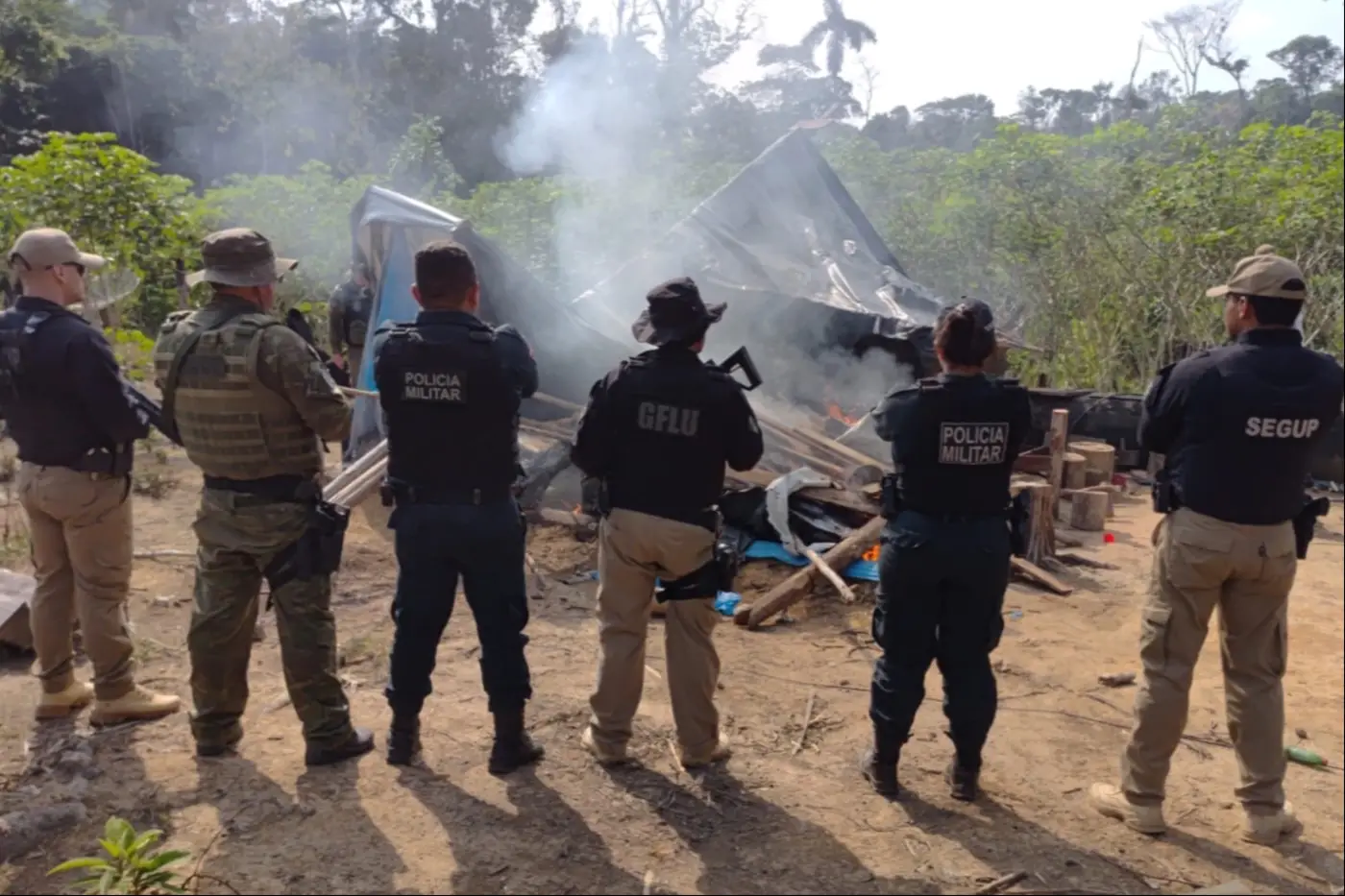 As ações de fiscalização são do ICMBio e contam com a segurança institucional de militares agregados da Segup. O foco é o combate ao garimpo ilegal, à exploração ilícita de madeira, ao desmatamento e às atividades logísticas de suporte a ilícitos ambientais.
