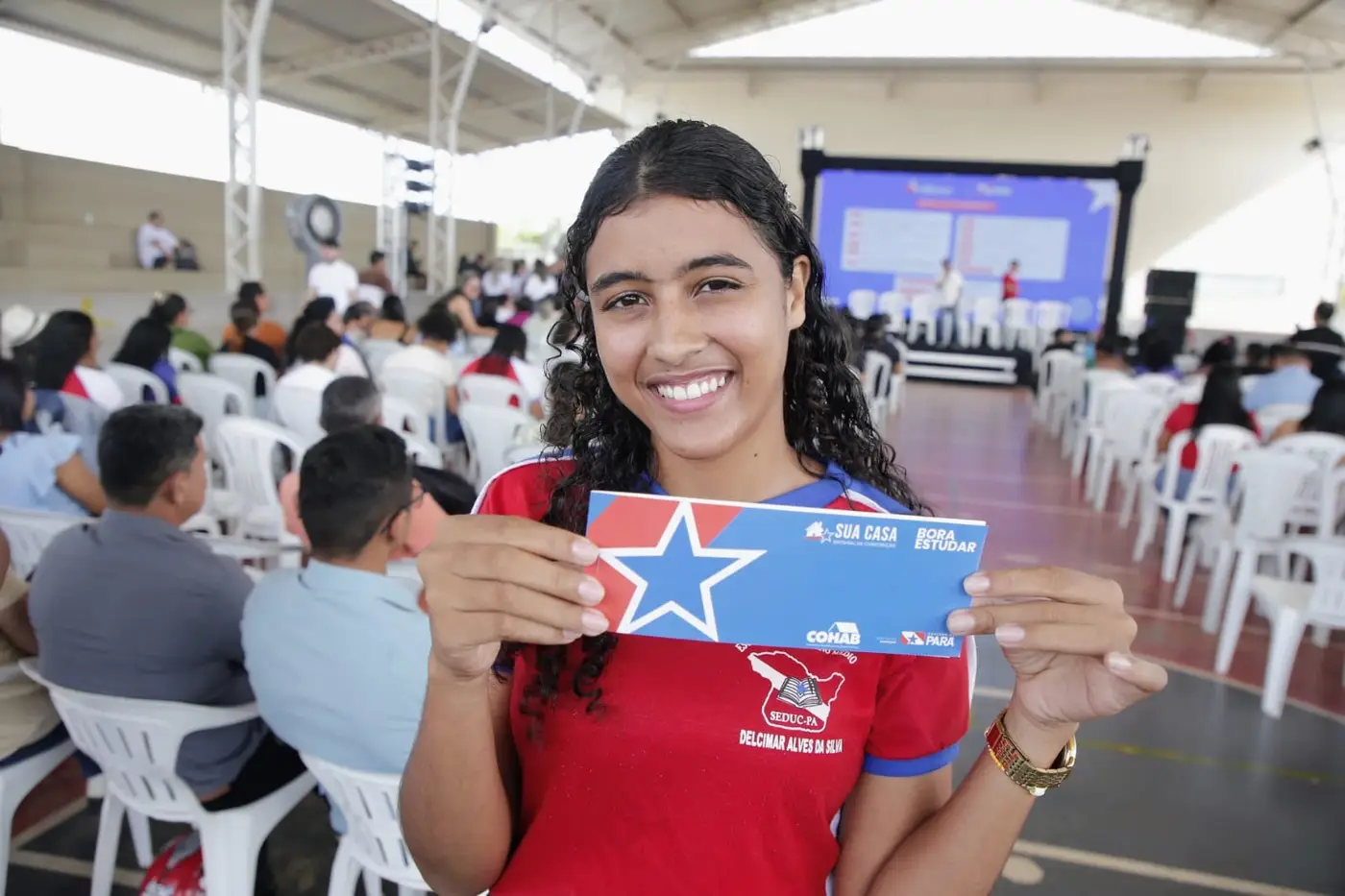 Durante o evento, cerca de 100 estudantes receberam cheques simbólicos do programa “Bora Estudar”, que premia alunos da rede estadual com notas acima de 900 pontos no Exame Nacional do Ensino Médio (Enem) e bom desempenho escolar ao longo do ano letivo.