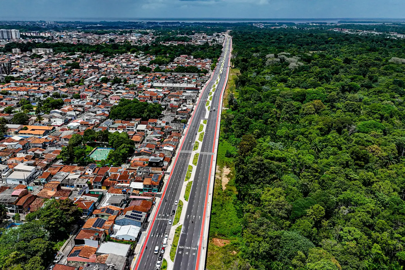 Funcionalidade – Com quase 3,4 quilômetros de extensão total, o prolongamento e duplicação da Nova Rua da Marinha já tem funcionalidade entre a Avenida Augusto Montenegro e a rotatória da Avenida Rodolfo Chermont, com o trânsito fluindo normalmente. A via, agora, conta com duas pistas de mão dupla com três faixas cada, além de canteiro central que recebeu o plantio de cerca de 260 novas árvores, urbanização, ciclofaixa e novas redes de drenagem e calçadas, atendendo as normas de acessibilidade.
