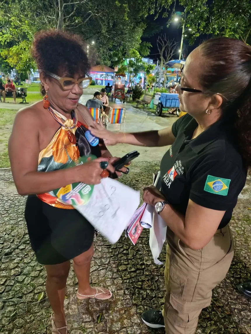 Ações educativas - Além das ações ostensivas, a Segup desenvolve atividades educativas por meio da Diretoria de Prevenção Social (DPS), com ações de sensibilização e distribuição de material informativo sobre prevenção ao feminicídio, à LGBTIfobia e à violência contra crianças e adolescentes. As atividades ocorreram na Praça da Vila, em pontos comerciais e junto aos brincantes do trio elétrico.