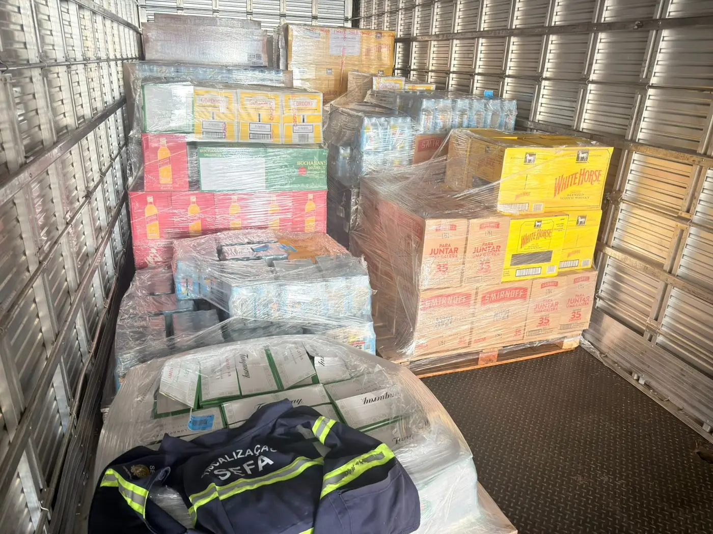 Bebidas alcoólicas - Durante fiscalização também realizada na quarta, pelos fiscais de receitas estaduais lotados na Coordenação de Controle de Mercadorias em Trânsito de Itinga, no município de Dom Eliseu, Nordeste do Estado, foram apreendidas 329 caixas de bebidas alcoólicas, sendo 17 caixas de gin, 263 caixas de vodca e 49 caixas de uísque, avaliadas em R$ 103.444,12.