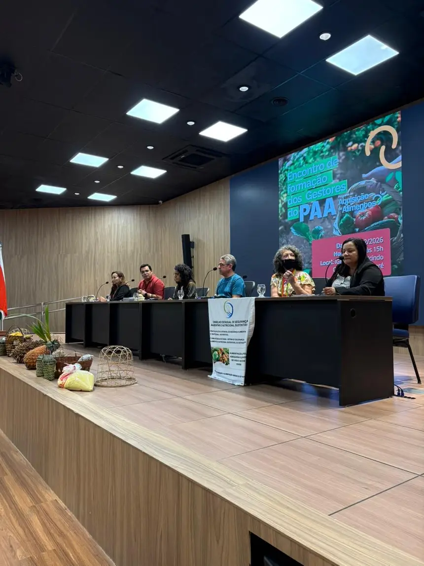 Cerca de 200 gestores públicos participaram, nesta quinta-feira (20), em Belém, do Encontro de Capacitação do Programa de Aquisição de Alimentos (PAA), promovido pelo Governo do Estado, por meio da Seaster, para fortalecer a execução da política em 122 municípios do Pará, aderidos ao Sistema Nacional de Segurança Alimentar e Nutricional (SISAN). O objetivo foi aprimorar a aplicação dos recursos, que somam R$ 11.984.372,47 em execução em 2026, por meio de orientações técnicas sobre fluxos operacionais, prestação de contas e acompanhamento do programa, que compra alimentos da agricultura familiar para doação a instituições socioassistenciais, priorizando populações em situação de insegurança alimentar.