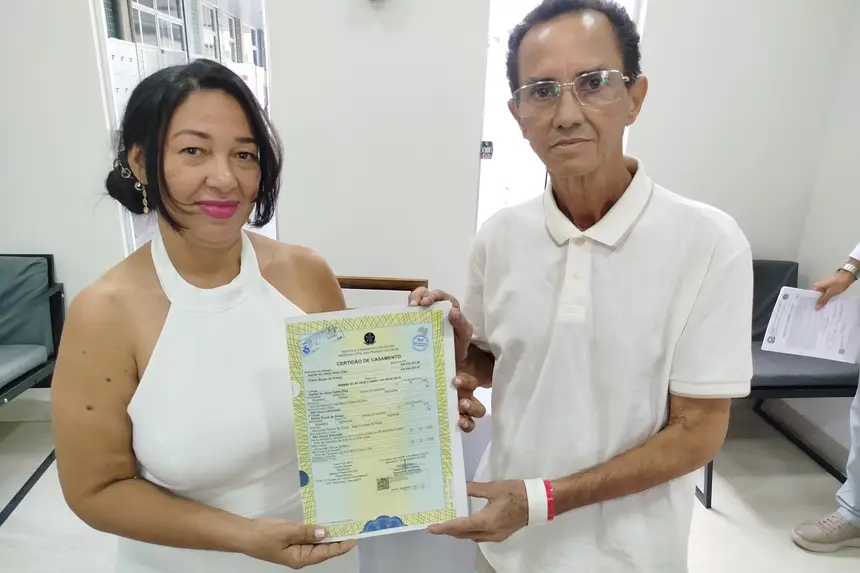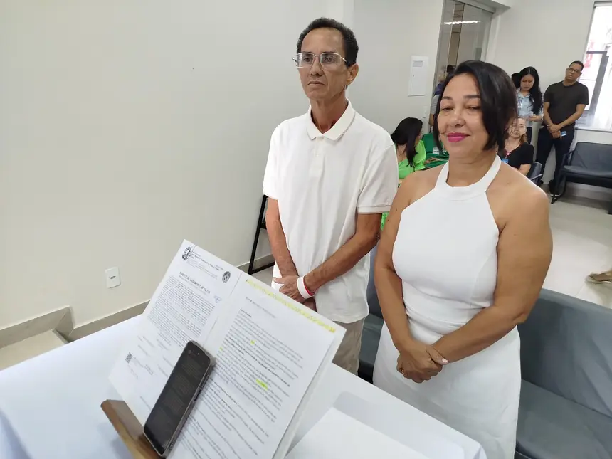 Após 32 anos caminhando lado a lado, entre conquistas e desafios, Izamar de Jesus e Eliane Sousa decidiram oficializar o amor que sempre sustentou a relação. No último sábado (21), casaram-se no civil na capela ecumênica do Hospital Regional do Sudeste do Pará – Dr. Geraldo Veloso (HRSP), em Marabá, onde Izamar realiza tratamento oncológico, transformando o espaço de cuidado em cenário de fé, esperança e celebração.