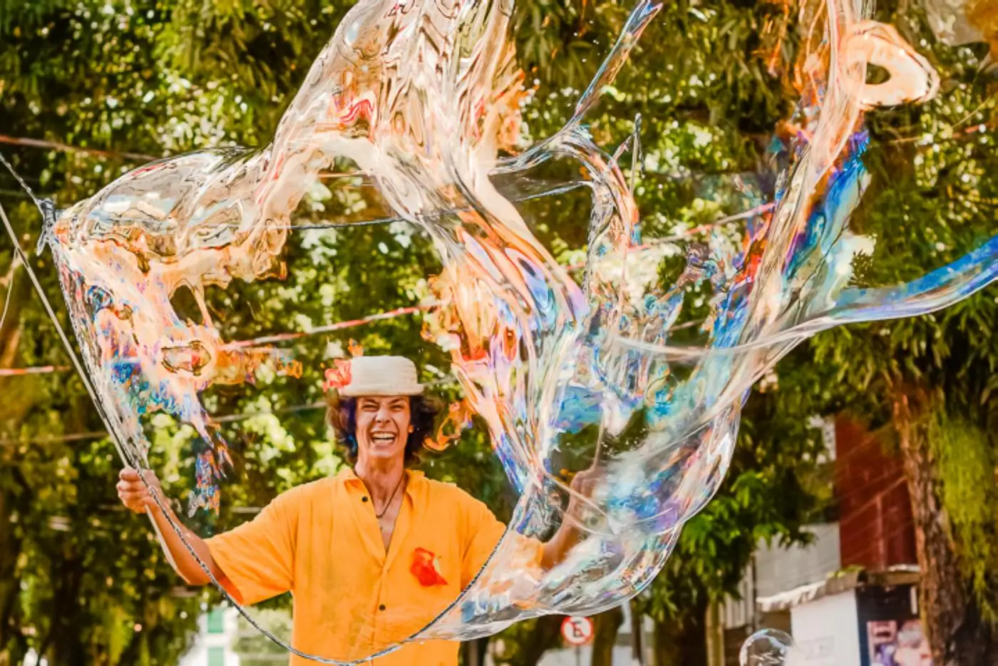 A atividade propõe uma experiência interativa, em que o público poderá acompanhar demonstrações e participar da produção de bolhas de diferentes tamanhos, utilizando instrumentos artesanais criados pelo próprio artista. A proposta é estimular o brincar coletivo e a imaginação, reunindo crianças e adultos em uma experiência lúdica ao ar livre.