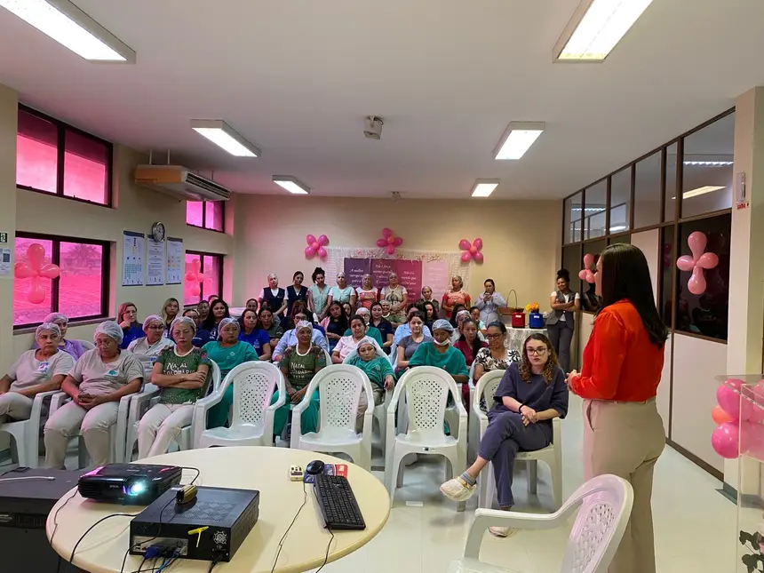 Além da ação com as usuárias, o hospital promoveu uma ação de educação em saúde sobre cuidados com a saúde da mulher, ministrada pela médica ginecologista Carolina Mainardi. A atividade foi voltada às colaboradoras da unidade e abordou orientações importantes sobre prevenção, autocuidado e qualidade de vida. A programação também contou com sorteio de brindes e um lanche especial, proporcionando um momento de integração e valorização das profissionais que atuam diariamente na assistência à população.