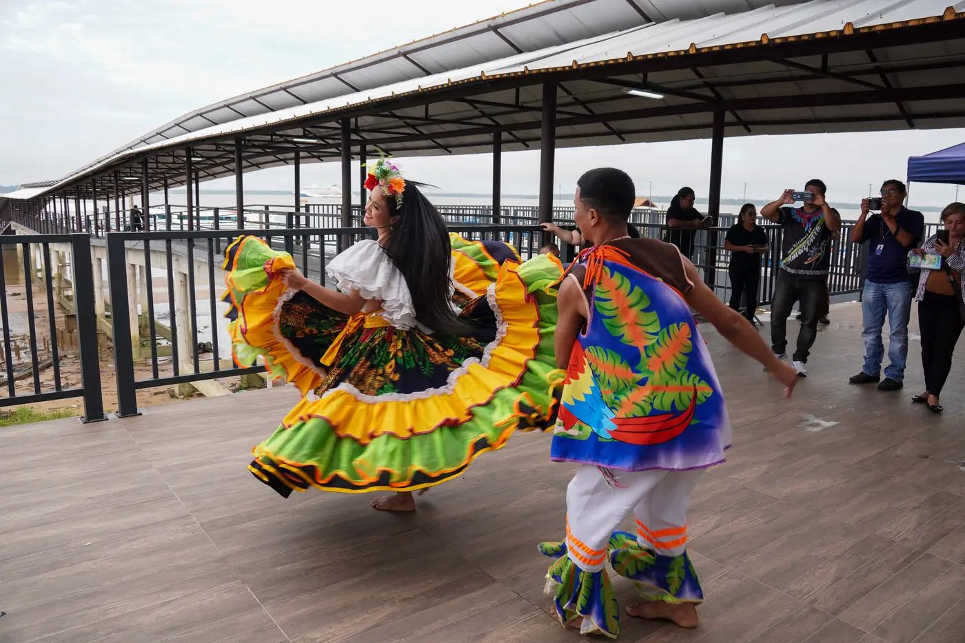 Setur preparou um animado receptivo com carimbó e material promocional no Terminal Hidroviário e Turístico de Icoaraci, distrito de Belém