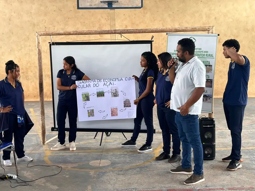 Mais de 140 alunos do Ensino Médio, da Escola Municipal Tomé Lopes de Castro, localizada na Vila Santa Maria do Icatu, a 46 quilômetros da sede municipal de Igarapé-Miri, na Região de Integração Tocantins, participaram na quarta-feira (11) da Oficina “Economia Circular do Açaí”, que abordou sustentabilidade e consciência ambiental, a partir do reaproveitamento de resíduos, além de oportunidades de negócios.