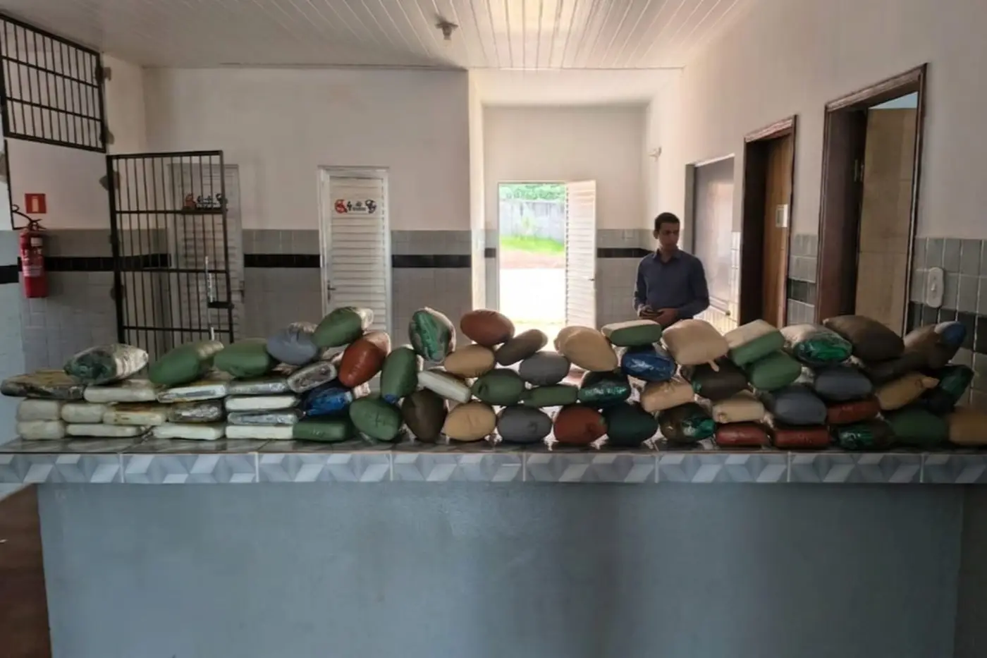 No imóvel, foram apreendidos 65 tabletes de entorpecentes diversos, cerca de 75 quilos de drogas, escondidos em bolsas e mochilas.